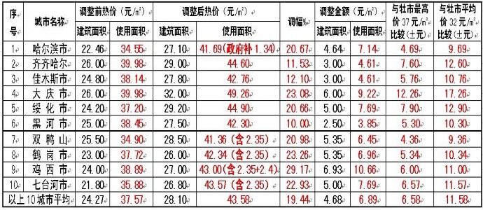 貫徹國家三部委和省政府關(guān)于啟動煤熱價(jià)格聯(lián)動機(jī)制要求,2008年哈爾濱、齊齊哈爾、佳木斯、大慶、雞西、雙鴨山、鶴崗、綏化等8城市都調(diào)整了熱價(jià),2009年七臺河市、伊春市調(diào)整了熱價(jià),2010年黑河市也調(diào)整了熱價(jià),見下表: