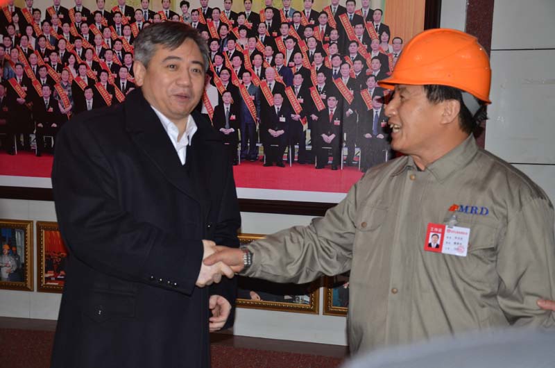 劉忻市長(zhǎng)與副董事長(zhǎng)、黨委書(shū)記宋道會(huì)親切握手劉忻市長(zhǎng)親切稱呼黨的十八大代表、全國(guó)勞動(dòng)模范關(guān)霄梅為女中豪杰