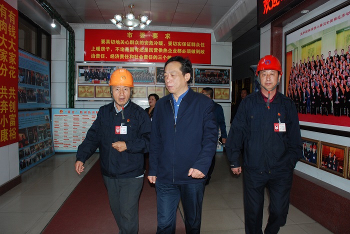 企業(yè)負責人報告馬書記,現(xiàn)在的供熱準備工作基本就緒,現(xiàn)在就看天氣變化情況,隨時可以開栓供熱。他說:你們一直做的非常好,而且“送用戶溫暖、還市民藍天”的態(tài)度堅決,這我知道。你們?yōu)槿?、為老百姓付出了很多,你們擔負的包袱,市委、市政府是有?shù)的,全市的老百姓是有數(shù)的。你們是供熱的主力軍,供熱面積占全市熱電聯(lián)產(chǎn)供熱面積的65%以上,到你們這里實地看一看,煤炭有庫存,供熱各項準備工作充分,絕大多數(shù)用戶供熱就有保障了,我的心里也就更加有底了。